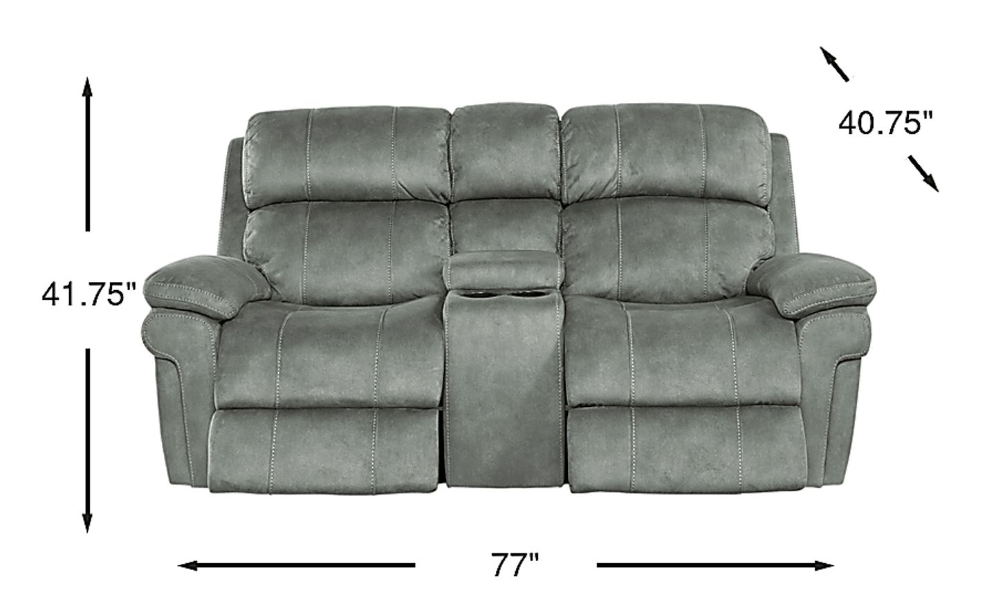 Seating for two reaches new heights of comfort and convenience with the Glendale power reclining loveseat. Made for relaxing movie nights and watching the big game, the loveseat has twin cupholders, lift-top storage console and USB ports on each side. Additional premium features include power headrests and padded power footrests that raise and lower for customized comfort at the touch of a button. An innovative memory switch gives instant access to repeat favorite positions. The power headrest feature provides three extra inches of back height that tilts forward for the most comfortable position for watching television. Contoured bucket seats and pillow top arms add cozy elements while contrasting baseball style stitching detail adds just the right complement to the fabric's charcoal color. 100% Polyester.