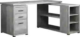 The trendy and industrial look of this "L" shaped Glenlivet computer desk will be the focal point in your modern home office. This simple and stylish desk features thick panels and clean lines in a warm grey wood grain look. The desk portion offers a spacious work surface that is great for doing paperwork or working on your computer. It also features two medium storage drawers and a convenient lateral file drawer on metal glides to help keep you organized. The secondary surface can be assembled on the left or right hand side of the desk and offers additional workspace with adjustable shelves. The black handles and feet boldly accent this L shaped desk making it a must have for any home or office space. Customer assembly is required.