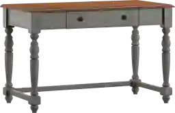 This desk achieves its farmhouse appeal through a combination of traditional craftsmanship and a striking two-tone finish. The smooth, oak-finished top provides natural warmth, while the antique gray base and classic turned legs offer a handcrafted, rustic character. Dark-finished knob hardware serves as a subtle accent, making it a perfect anchor for home offices that prioritize a cozy yet classic aesthetic.