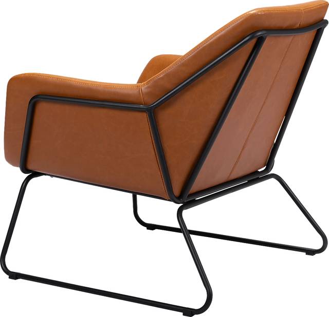 The Gloralee accent chair is wrapped in vinyl on top of a powder-coated steel base. This chair with its angular comfy shape looks great in any modern or urban space, residential or hospitality. Customer assembly required