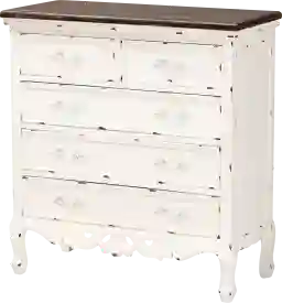 Bring the charm of mid-century design to your bedroom with the Glyneagle white chest. This chest is constructed from solid wood with molded embellishments. Five drawers offer ample storage space to organize all your bedroom essentials. The Glyneagle utilizes cabriole legs for stable support in elegant, mid-century style. A timeless design equipped with modern convenience, the Glyneagle is a fantastic addition to any space. Customer assembly is required.