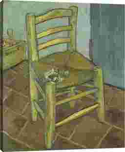 Goghs Chair soft ochres and dusty blues give the scene a quiet, grounded warmth, while thick brushstrokes add texture and weight. The simple composition feels deeply personal, evoking solitude without sadness. Our Gallery Wrap Canvas Prints are proudly assembled with high quality materials in California, USA. Each piece is printed on a thick, archival grade canvas using Giclee technology. It is then hand-stretched by our experienced artisans over solid wood bars, which will not warp over time. The final product is a piece personally crafted for you to confidently display on your wall. Ensure that the location of your piece has little to no exposure to heat, sunlight, and moisture. Wipe clean, only if needed. Each piece includes a sawtooth hanger to hang on your wall. Customer assembly is required.