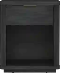 This modern nightstand offers a practical blend of concealed and open storage. It features one smooth-gliding drawer, perfect for keeping personal items tucked away, and one open lower shelf. This open shelf is an excellent spot for stacking books or displaying decorative accents, providing a sense of visual lightness that complements its modern style.