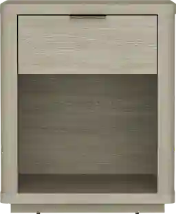 This model is designed to offer a balance of hidden and open storage. It features one smoothly gliding drawer, perfect for keeping personal items and electronics tucked away, and one lower shelf. The open shelf is ideal for stackable items like books or for displaying decorative accents that enhance your bedroom’s serenity.