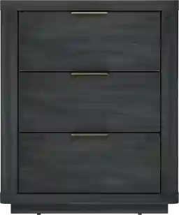 The Golddale IV charcoal gray nightstand exudes timeless romance, blending elegance and function effortlessly. Crafted with rich wood tones and graceful lines, they evoke the warmth of intimate evenings and quiet moments shared. Each drawer glides smoothly, offering space for your treasured keepsakes, while the subtle gold hardware adds a touch of sophistication. These nightstands transform your bedroom into a haven of serenity, where love and design intertwine seamlessly. Customer assembly is required.