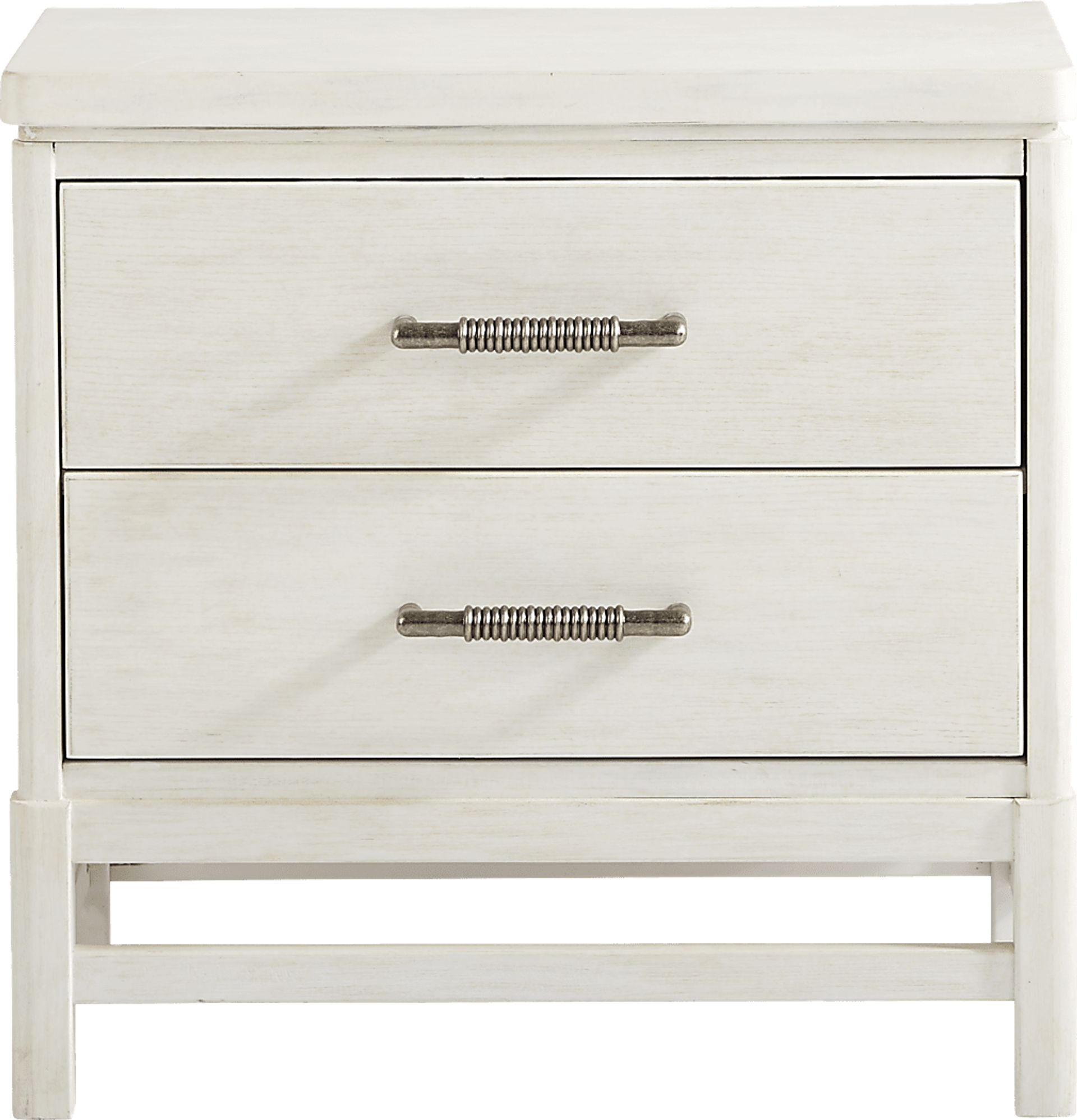Look no farther than the Golden Isles nightstand to find your lamp, phone or perhaps a cool glass of water. This nightstand's smooth surface is ideal for any of those things while concealed storage is supplied by two roomy drawers each reinforced by English dovetail joints. Crafted with poplar solids and Mindy veneers, the nightstand has a relaxed feel created by a vibrant white finish. Pewter finished hardware offers the final touch.