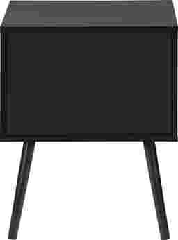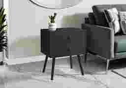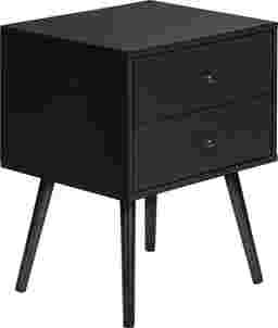 Introducing the Goldmann black nightstand that seamlessly blends fashionable style with practical functionality. This black laminate nightstand with a space-saving design is the perfect addition to a small bedroom as a nightstand, living room, or any cozy nook in your home. With its simple, modern design this piece is crafted with solid wood legs and durably designed to handle everyday life, while adding a touch of chic to your decor. Featuring two spacious storage drawers with wood handles, you can easily stow away your essentials, from books to remotes, ensuring your space remains organized without compromising on style. Plus, the easy to clean top means you can wipe away spills in a flash making maintenance a breeze. This nightstand is easy to assemble with illustrated instructions included, allowing you to set it up and start enjoying its benefits in no time. Customer assembly is required.