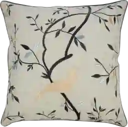 Infuse your home with timeless elegance and intricate craftsmanship with the Goldpaw contemporary cream and dark blue throw pillow. This beautiful pillow strikes the perfect balance between leisure and luxury, featuring an embroidered botanical bird design on a neutral linen backdrop. The finely detailed floral and fowl motif is complemented by decorative welted piping, adding a refined finish to this versatile piece. Handwoven and hand-stuffed , this pillow effortlessly enhances modern, traditional, and transitional decor styles, making it an ideal accent for any room in your home. Poly insert included.
