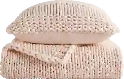 Introducing our cozy home retreat bundle - the ultimate comfort combo Revamp your home with our Chunky Knit Decor Pillow and Chunky Hand-Knit Oversized Throw Blanket. The Chunky Knit Decor Pillow features a 100% acrylic cover and a soft polyester liner for a cozy haven of relaxation. Its chunky knit design adds texture and warmth, while its array of stunning colors effortlessly match your decor. Pair it with our Chunky Hand-Knit Oversized Throw Blanket, made from high-quality acrylic that's ultra-soft to the touch. Whether you're snuggling up for a movie night or drifting off to sleep, this blanket is the perfect companion.