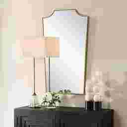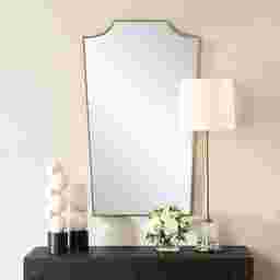 The Granda mirror features a classic, feminine silhouette with an elegant antique gold leaf finish, adding a touch of timeless sophistication to any space.