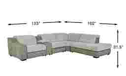 Experience premium lounging with the Grande Point sectional. Combining sleek contemporary style with head-to-toe power reclining comfort, this sectional is a luxurious choice. For customized comfort, the headrest and padover chaise footrest (on the end of the sectional) can be raised and lowered to any position at the touch of a button. Headrests on three of the backs can be manually adjusted to find a supportive position while the comfortable chaise offers a wonderful place to stretch out. A convenient USB port keeps electronic devices charged up and ready to go. The console features lift-top storage for remote controls and two brushed aluminum cupholders. Upholstered in light gray chenille and gray Microfiber fabric, this two-tone sectional has an exceptional look and feel. Tufted detailing, high European arms and solid wood legs add eye appeal. 100% Polyester