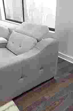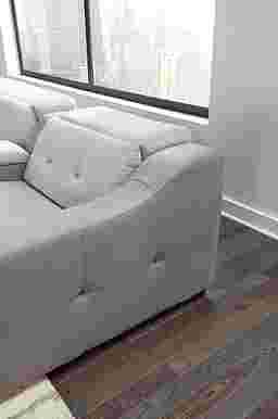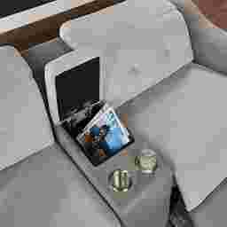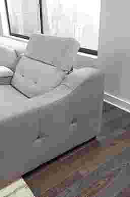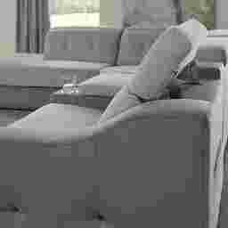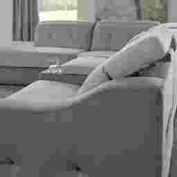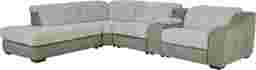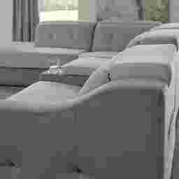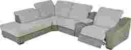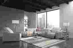 Experience premium lounging with the Grande Point sectional. Combining sleek contemporary style with head-to-toe power reclining comfort, this sectional is a luxurious choice. For customized comfort, the headrest and padover chaise footrest (on the end of the sectional) can be raised and lowered to any position at the touch of a button. Headrests on three of the backs can be manually adjusted to find a supportive position while the comfortable chaise offers a wonderful place to stretch out. A convenient USB port keeps electronic devices charged up and ready to go. The console features lift-top storage for remote controls and two brushed aluminum cupholders. Upholstered in light gray chenille and gray Microfiber fabric, this two-tone sectional has an exceptional look and feel. Tufted detailing, high European arms and solid wood legs add eye appeal. 100% Polyester