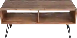 The Granela cocktail table will add functional charm to any space. This cocktail table features reclaimed wood construction in a natural finish with black iron hairpin legs, instantly exuding an industrial yet rustic flair. A lacquer finish ensures long lasting protection and durability. The sturdy metal legs conveniently fold to allow for easy portability and storage. Two open shelves provide ideal space to store and display books, magazines, electronics and more. Customer assembly is required.