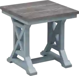 The classic Grantland end table features natural wood grain plank top and a bar harbor blue finish base. The trestle styling of the base provides just the right amount of design elements to draw the eye, yet not overwhelm the senses. Customer assembly is required.