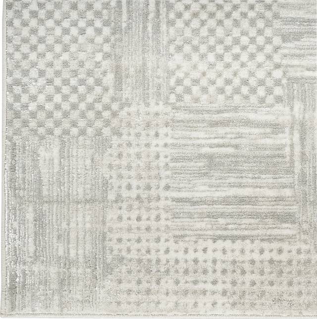 The Granway Area Rug Collection embodies contemporary style. Art Deco inspired, abstract, and geometric rug patterns are finished with subtly raised accents and a glamorous shimmer that adds a brilliant look to your living room, dining room, or bedroom dcor. Made from softly textured polyester yarns for easy cleaning, Granway is ideal for use in busy households with kids and pets. Bring refreshing style to your home with this abstract rug from the Granway Collection. The patchwork of lines and geometric patterns is presented in understated shades of silver and gray, which is enhanced with a luxurious sheen that shifts in tone with changes in ambient light. Made from softly textured polyester yarns that are easy to clean.