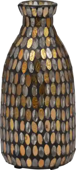 A glass vase is an excellent choice for floral arrangements because glass is naturally non-porous and water-safe, preventing leaks and moisture damage to your surfaces. The unique mosaic design of this contemporary piece, featuring rich bronze and copper tones, adds a layer of sophisticated texture that captures and reflects light differently than plain glass, making it a striking standalone decorative accent even without flowers.