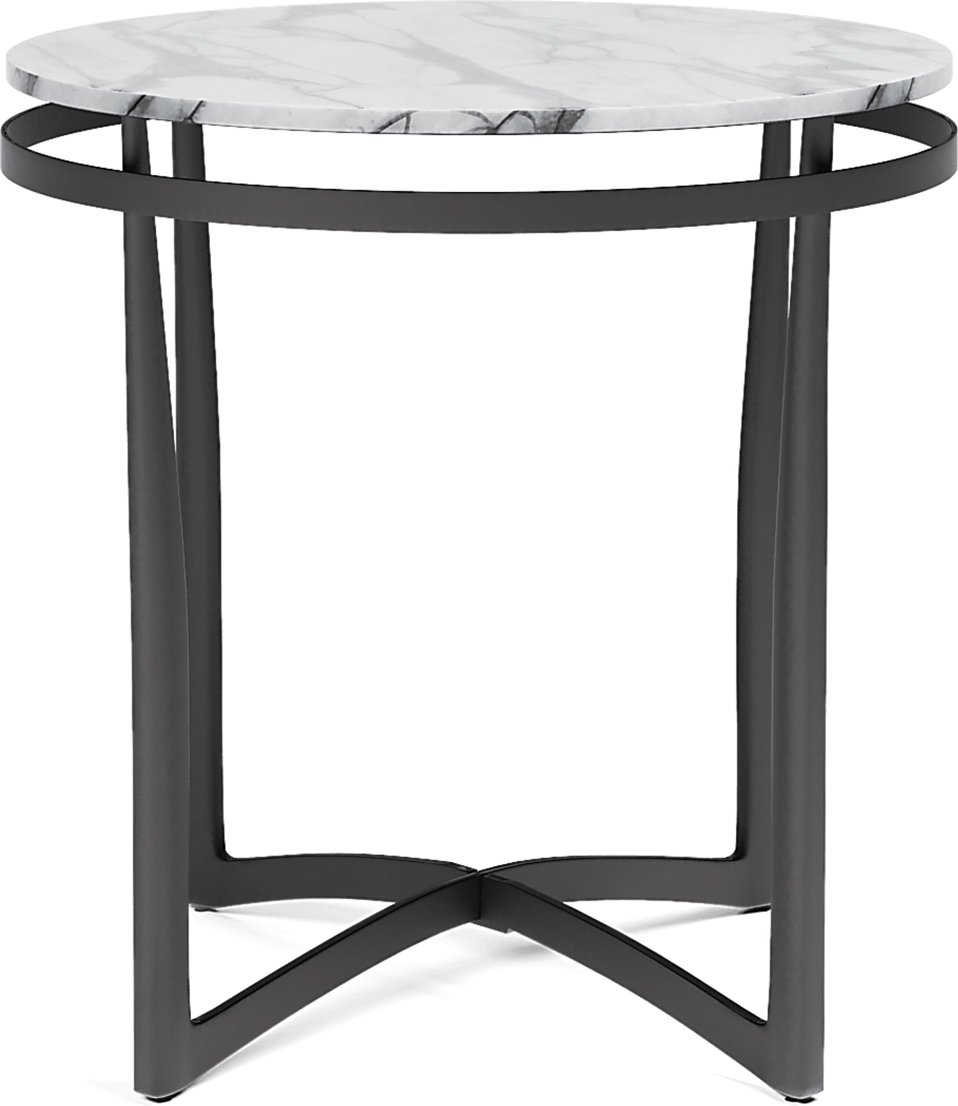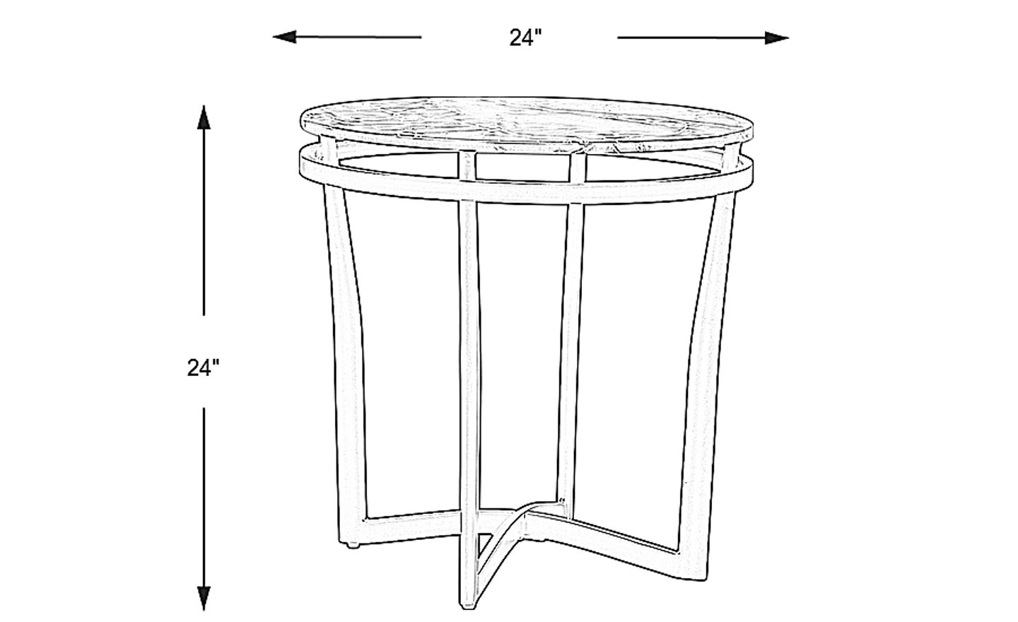 The Grasonville end table is a practical and stylish addition to almost any living space. The 24 inch round top has the look of marble while the metal base is rendered in a rich dark gray finish. It's the ideal partner for a sofa, loveseat or chair.