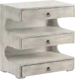 The unique Gratton accent cabinet is perfect for any storage needs. Featuring three drawers and three shelves, along with a white gray wash finish. Customer assembly is required.