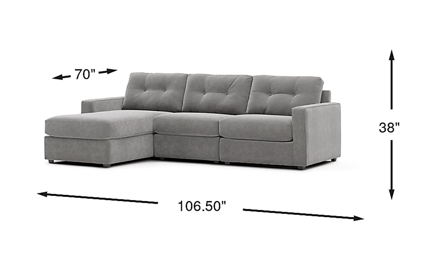 With a total width of 106.5 inches and a depth of 70 inches, this sectional provides a generous seating area while maintaining a manageable footprint for many urban living spaces. The modular nature is particularly advantageous for apartment dwellers; because the sectional consists of individual pieces, it is much easier to navigate through narrow hallways, elevators, and standard doorways during delivery compared to traditional, bulky one-piece sofas.