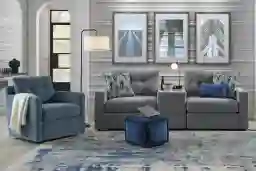 Discover the limitless possibilities of the Drew & Jonathan ModularOne, thoughtfully designed with comfort and flexibility in mind. This customizable seating solution features individual pieces that can be configured to any shape your room needs - the seating arrangement you want is always right at your fingertips. Each individual piece is upholstered on all sides in our signature fabric, New Horizon. This soft, gray chenille includes Repreve yarn, made with recycled plastic bottles. The seating area has welted track arms, top-stitched seat cushions and button-tufted back cushions for an elegant silhouette. Seats with power reclining functionality allow for easy adjustment of the footrest, providing the ultimate in personalized comfort. A media console provides hidden storage, USB charging ports, wireless charging, bluetooth-enabled speakers, and doubles as a side table with sleek acrylic top. Includes power LAF recliner, media console, and power RAF recliner. Upholstery: 100% Polyester.