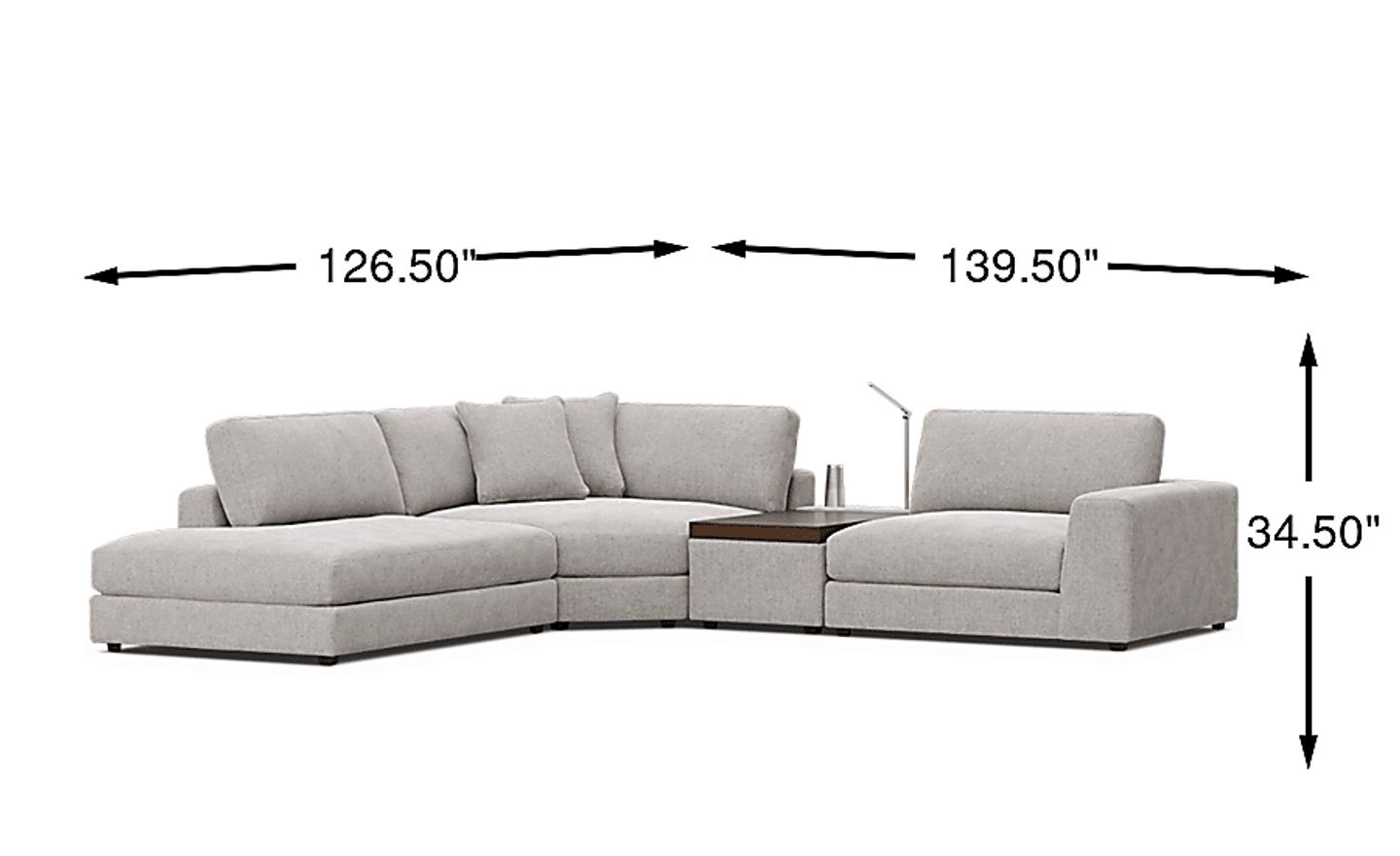 To ensure a comfortable fit, we recommend measuring your space to allow for 18 to 24 inches of walkway space around the furniture. This specific 4-piece configuration measures 139.5"w x 126.5"d, making it an ideal anchor for open-concept living areas. A professional rule of thumb is that your seating should occupy approximately two-thirds of the available wall or floor space to maintain a balanced aesthetic without overcrowding the room.