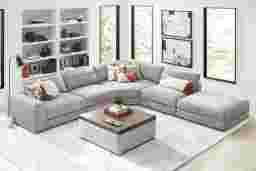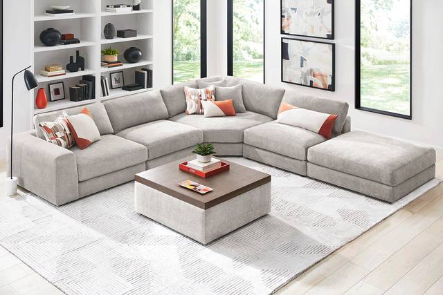 Discover the unlimited possibilities of the Drew & Jonathan ModularThree collection, thoughtfully designed to deliver the utmost in comfort and flexibility. Contemporary in style and upholstered in rich gray chenille, the tailored look of this innovative seating solution is accentuated by deep lounge seats offering the indulgent luxury of ultra-comfortable custom feather, fiber and down blend cushions. Each piece is upholstered on all sides, creating endless opportunities for reconfiguration and individual use. Select a preconfigured design or visit a showroom to learn about individual components and create the modular solution perfect for your space and style. Includes LAF chair, 2 armless chairs, 1 wedge and 1 bumper ottoman. Upholstery: 100% Polyester.