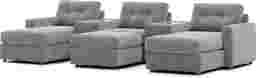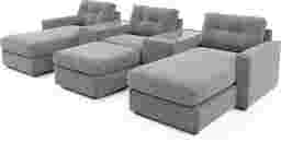 Discover the limitless possibilities of the Drew & Jonathan ModularOne, thoughtfully designed with comfort and flexibility in mind. This customizable seating solution features individual pieces that can be reconfigured to the shape you need. Game days, movie nights, sleepovers, and everyday relaxation are all better when the seating arrangement you want is always right at your fingertips.Each individual piece is upholstered on all sides in our signature fabric, New Horizon. This soft, gray chenille includes Repreve yarn, made with recycled plastic bottles. Featuring two chaises, an armless chair, and an ottoman, the upholstery in this collection boasts welted track arms, top-stitched seat cushions and button-tufted back cushions for an elegant silhouette. Two center consoles provide hidden storage and double as side tables with sleek acrylic tops. Includes LAF chaise, two consoles, armless chair, ottoman, & RAF chaise. Visit a showroom to learn more about individual components and to work with a sales specialist to customize your own configuration today.