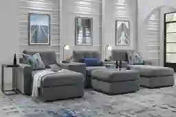 Modular sofas offer unparalleled versatility for your living space. Unlike a standard sectional with a fixed shape, each piece of this system is upholstered on all sides, allowing you to reconfigure the layout as your needs change—whether you're hosting a movie marathon or rearranging for a new home. The inclusion of an ottoman and two center consoles provides additional flexibility, allowing you to create a "double chaise" layout or separate seating areas entirely.