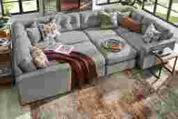 Discover the limitless possibilities of the Drew & Jonathan ModularOne, thoughtfully designed with comfort and flexibility in mind. This customizable seating solution features individual pieces that can be reconfigured to the shape you need. Game days, movie nights, sleepovers, and everyday relaxation are all better when the seating arrangement you want is always right at your fingertips.Each individual piece is upholstered on all sides in our signature fabric, New Horizon. This soft, gray chenille includes Repreve yarn, made with recycled plastic bottles. The seating area has welted track arms, top-stitched seat cushions and button-tufted back cushions for an elegant silhouette. Two ottomans on casters slide into the middle and lock in place to create a cozy area the whole family can enjoy. A matching pillow provides the perfect final touch. Includes LAF chair, two corner wedges, 2 armless chairs, 2 ottomans, & RAF chair. Visit a showroom to learn more about individual components and to work with a sales specialist to customize your own configuration today.