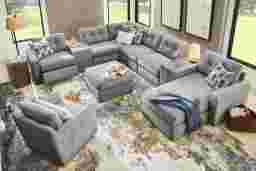 Discover the limitless possibilities of the Drew & Jonathan ModularOne, thoughtfully designed with comfort and flexibility in mind. This customizable seating solution features individual pieces that can be reconfigured to the shape you need. Game days, movie nights, sleepovers, and everyday relaxation are all better when the seating arrangement you want is always right at your fingertips. Each individual piece is upholstered on all sides in our signature fabric, New Horizon. This soft, gray chenille includes Repreve yarn, made with recycled plastic bottles. The open seating includes a chaise and has welted track arms, top-stitched seat cushions and button-tufted back cushions for an elegant silhouette. Two center consoles provide hidden storage and double as side tables with an acrylic top. A matching pillow provides the perfect final touch. Includes RAF chaise, two consoles, three armless chairs, corner wedge, & LAF chair. Visit a showroom to learn more about individual components and to work with a sales specialist to customize your own configuration today.