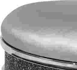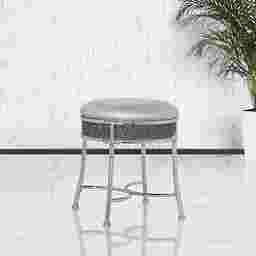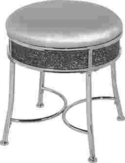Providing a modern flare with a hint of glam, this Grayhampton vanity stool is the perfect addition to your bathroom vanity or any room in your home needing extra seating. Featuring a striking band of faux black cluster diamonds circling the base adding a stunning design. The textured silver shimmer fabric round 16" seat adds beauty to this backless vanity stool. Chrome finished metal legs with bun feet support makes this optional seating a statement piece. Customer assembly is required.