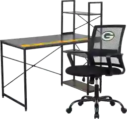 Transform your workspace with this stylish Green Bay Packers desk, featuring a unique space saving design and a vibrant team-colored task chair. This customizable desk allows you to tailor the shelves above and below the desktop, providing ample storage to keep you organized. With its industrial aesthetic and reclaimed laminate top, this desk effortlessly complements any room decor. Elevate your workspace while showcasing your team spirit perfect for tackling tasks or inspiring creativity. Customer assembly is required.