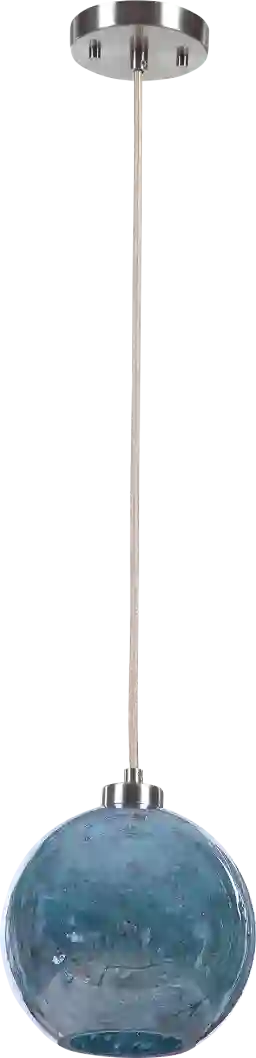 Yes, this fixture is specifically designed for coastal-inspired interiors. The blue aqua stone glass shade provides a dreamy, soothing focal point reminiscent of the sea, while the brushed nickel metal accents offer a clean, sophisticated finish. The addition of a beige fabric cord introduces a natural texture that complements beachside or nautical-themed rooms.