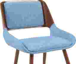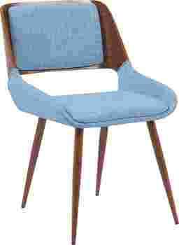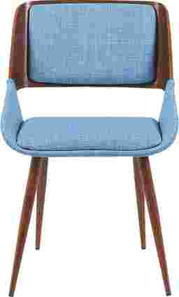 Bring timeless comfort and mid-century elegance into your space with the Greenbarn blue side chair. Designed with a sculptural silhouette and upholstered in premium performance fabric, the Greenbarn pairs nostalgic charm with modern functionality. The subtly angled, walnut veneer-finished metal legs offer the warmth of wood grain with the durability of steel, providing a stylish and supportive base for everyday use. The gently curved backrest is framed in smooth walnut finish and features a plush, padded cushion for posture-friendly support. A medium-firm seat delivers lasting comfort, whether you're gathered around a dining table, working from your home office, or hosting an evening with friends. The open lower back promotes airflow and adds a light, airy look to the chair's distinctive box-style profile. Customer assembly is required.