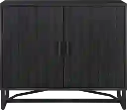 To accommodate varying storage needs, the interior features a single adjustable pine wood shelf. This flexibility allows you to customize the cabinet to store larger items, such as a collection of vinyl records or tall vases, as well as smaller household essentials. The two-door panel design ensures your belongings stay organized and out of sight for a clean, intentional look.