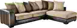 The Gregory sectional offers simply irresistible seating covered in warm beiges and browns. Slightly textured, easy care Microfiber Plush cushions in three gorgeous hues nest in a frame of faux leather brown vinyl creating a sharp contrast. Simple block feet and contrasting double stitching dress up the sectional????????s modern base, while the extra long chaise puts a comfortable spin on this contemporary piece. Gregory 2 Pc SectionalCushions/Pillows 100% Polyester Base 10% Polyurethane, 70% Poly Vinyl Chloride, 20% Polyester