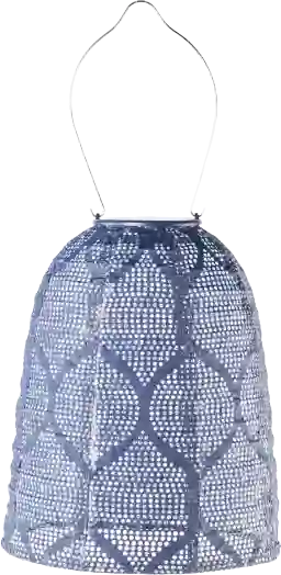 Inspired by lanterns found in the bazaars of Morocco, the Grello Peak outdoor solar lantern is ornately punched and brightly colored in midnight blue tones. Watch as the sun goes down, intricate patterns of light emit from the lantern by night. Made from durable Tyvek material, this lantern is as durable as it is beautiful and is designed for year round use outdoors. Professional installation by an electrician is recommended.