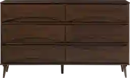 Unmistakably mid-century modern, this Grevilla dresser will boldly make a statement, whether you use it for added storage in the living room, TV room, or your bedroom. Six spacious drawers lend a look of retro-inspired flair with their curved, beveled detail, as well as modern functionality with their spacious interiors and smooth solid wood glides. Sleek, hardware-free drawer pulls add an element of classic modernity to the piece, while its durable, responsibly sourced solid wood build and included anti-tip kit ensure that this sustainably stylish piece remains a staple in your abode for years. Customer assembly is required.