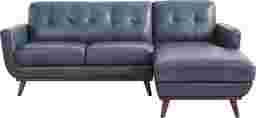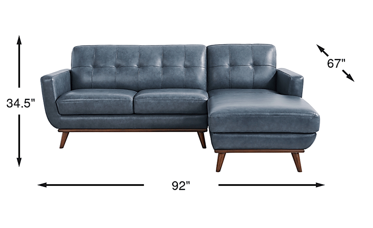 Refined with a smart mix of curves and lines, the Greyson sectional showcases style that lands just right in the lounge, the study, or the living room. Exquisitely modern, this piece's midcentury pedigree shines through its distinct u-shaped frame, light walnut finished base and canted tapered legs. Upholstered in blue top grain leather where the body touches, stylish details include track arms, biscuit-tufted backs, and top-stitched seams throughout. Upholstery: Top grain leather where the body touches and polyurethane fabric sides and backs. Leather is a durable, low maintenance product; however, general regular maintenance is necessary. To keep your leather clean, vacuum it regularly, removing any dust, and clean it with water and a mild non-detergent soap. Accent pillows not included.