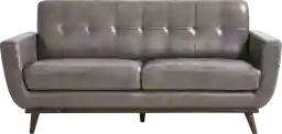 Refined with a smart mix of curves and lines, the Greyson sofa showcases style that lands just right in the lounge, the study, or the living room. Exquisitely modern, this seat's midcentury pedigree shines through in its distinct u-shaped frame, wood base in a light walnut finish, and canted tapered legs. Upholstered in gray top grain leather where the body touches, stylish details include track arms, biscuit-tufted backs, and top-stitched seams throughout. Upholstery:Top grain leather where the body touches with polyurethane sides and backs.
