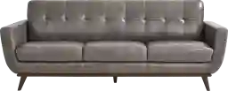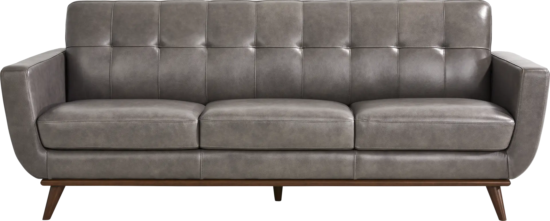 Refined with a smart mix of curves and lines, the Greyson sofa showcases style that lands just right in the lounge, the study, or the living room. Exquisitely modern, this seat's midcentury pedigree shines through in its distinct u-shaped frame, wood base in a light walnut finish, and canted tapered legs. Upholstered in gray top grain leather where the body touches, stylish details include track arms, biscuit-tufted backs, and top-stitched seams throughout. Upholstery:Top grain leather where the body touches with polyurethane sides and backs.