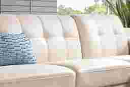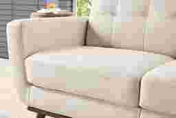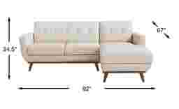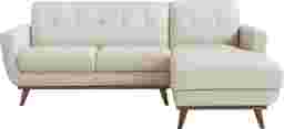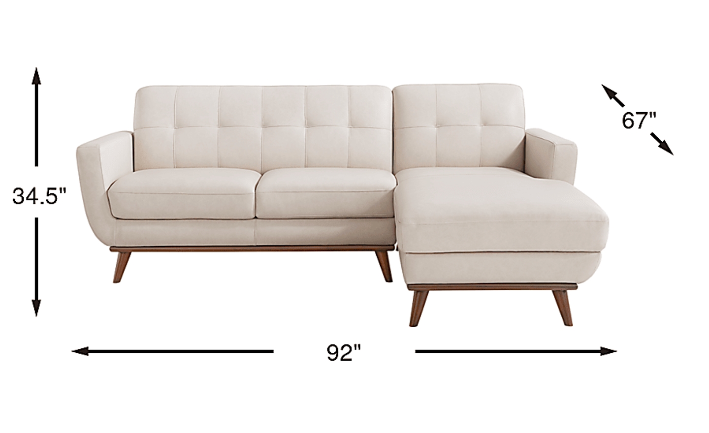 Refined with a smart mix of curves and lines, the Greyson sectional showcases style that lands just right in the lounge, the study, or the living room. Exquisitely modern, this piece's midcentury pedigree shines through its distinct u-shaped frame, light walnut finished base and canted tapered legs. Upholstered in ivory top grain leather where the body touches, stylish details include track arms, biscuit-tufted backs, and top-stitched seams throughout. Upholstery: Top grain leather where the body touches and polyurethane fabric sides and backs. Leather is a durable, low maintenance product; however, general regular maintenance is necessary. To keep your leather clean, vacuum it regularly, removing any dust, and clean it with water and a mild non-detergent soap. Accent pillows not included.