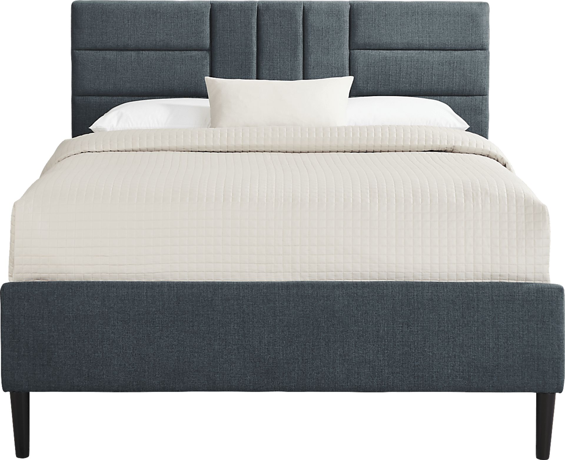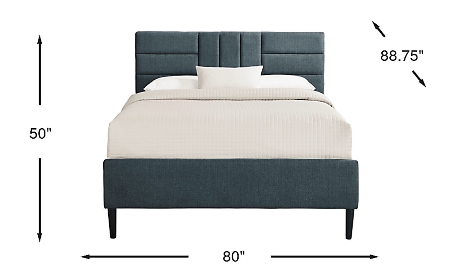 A touch of chic, a bit of old school class, and a lot of warmth makes the Greystone Height bed a welcome addition to any bedroom. Transitional in style, the blue upholstered headboard's geometric design, accompanied by a reserved, traditional footboard, create understated elegance at its finest. Made of rubberwood solids and supported by graceful, cylindrical feet, this piece is sure to set the mood for warm, cozy nights. Mattress and foundation (if required) sold separately.