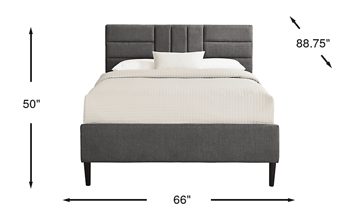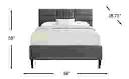 A touch of chic, a bit of old school class, and a lot of warmth makes the Greystone Height bed a welcome addition to any bedroom. Transitional in style, the dark gray upholstered headboard's geometric design, accompanied by a reserved, traditional footboard, create understated elegance at its finest. Made of rubberwood solids and supported by graceful, cylindrical feet, this piece is sure to set the mood for warm, cozy nights. Mattress and foundation (if required) sold separately.
