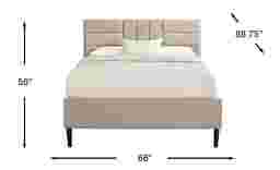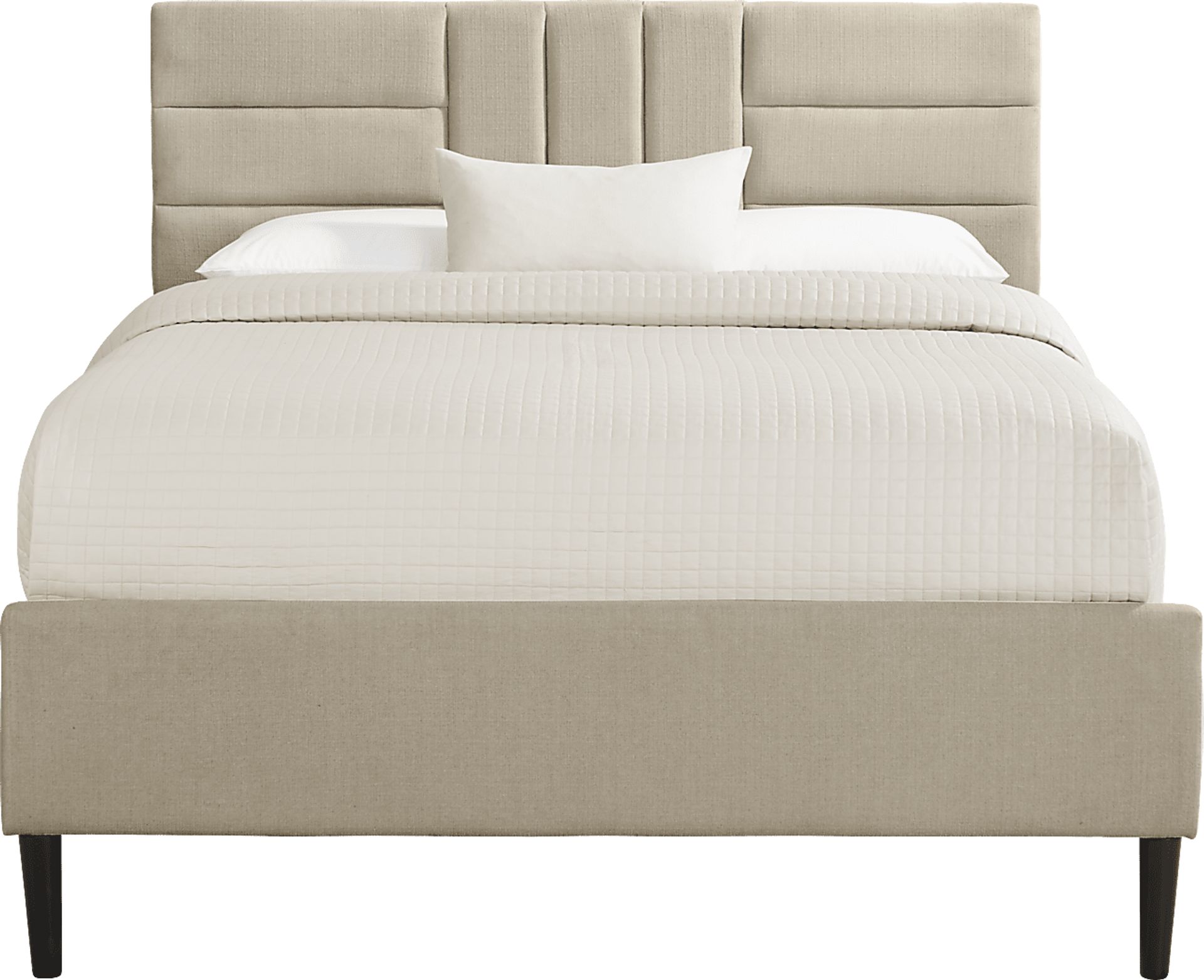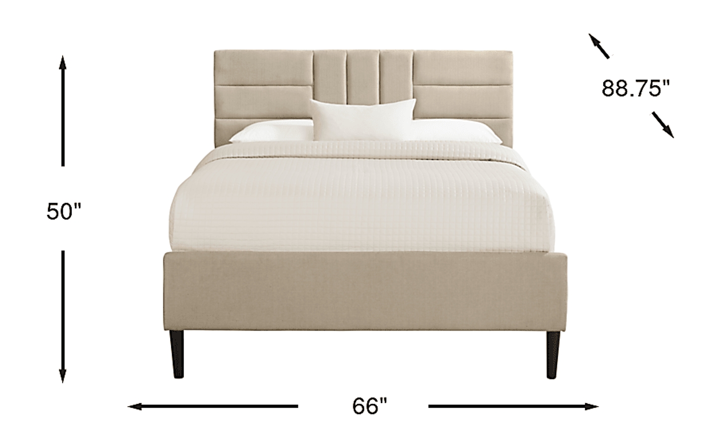 A touch of chic, a bit of old school class, and a lot of warmth makes the Greystone Height bed a welcome addition to any bedroom. Transitional in style, the tan upholstered headboard's geometric design, accompanied by a reserved, traditional footboard, create understated elegance at its finest. Made of rubberwood solids and supported by graceful, cylindrical feet, this piece is sure to set the mood for warm, cozy nights. Mattress and foundation (if required) sold separately.
