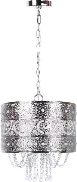 Add style and sophistication to your home with this gorgeous polished Griffith Point chandelier. The cylindrical shade features three bands of intricate patterns the top and bottom feature a concentric circles with crystal beads in the middle evoking a sun-like theme, while the middle band features beautiful swirls of crystals with metal outlines. With crystal dangles hung down the center, and a cut out pattern on the shade, it will cast a beautiful pattern on the surrounding walls when lit. Whether in the kitchen, the dining room, or anywhere that could use a bit of overhead light, this pendant is designed to catch the eye of your guests and brighten your space. Professional installation by an electrician is recommended.