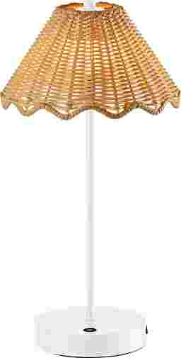 Introducing the Griggs Sea White Lamp, a versatile lighting solution that combines style and functionality. With its clean white finish and distinctive tapered shade featuring scalloped edges made of durable plastic rattan, this lamp brings a touch of contemporary elegance to any space. Powered by a rechargeable LED, it provides the convenience of portability without the need for cords. Plus, with an IPX4 location rating for outdoor use, you can enjoy its versatility both indoors and outdoors with confidence. Partial assembly may be required.