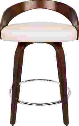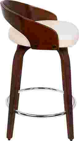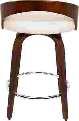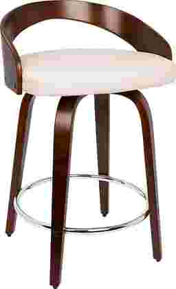 The Grotto cherry counter height stool's curved low cherry finished back and rounded legs radiate sophistication while modern features like a white cushioned seat that swivels and a chrome footrest bring this piece into a contemporary class all of its own. Some customer assembly required.