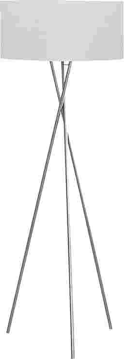 Elevate your space with the Grottopoint Silver Floor Lamp in sleek nickel metal with an elegant gray fabric shade. This floor lamp features a tripod design for a modern touch, perfect for brightening up any room and creating a warm ambiance. Add a touch of sophistication to your living room, bedroom, or office decor with this versatile and chic floor lamp that is sure to be a standout accent piece. Partial assembly may be required.