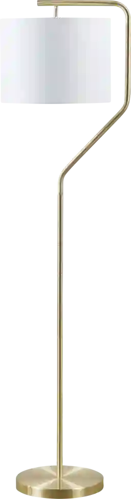 Brighten the dark corners of your living room with the Groze Alley floor lamp. Featuring a slender, angular metal stand and gold base, this floor lamp comes with a linen drum-shaped shade that filters the light for a soft warm glow. A clear cord rounds out the simple transitional design to easily complement and illuminate your space. Partial assembly may be required.